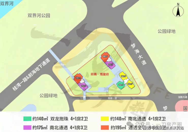 生态:北拥 双界河,西望前海湾,周边被 双界河公园、前海石公园、桂湾公园 等多个生态公园环绕,实现了都市核心与自然静谧的奇妙平衡。