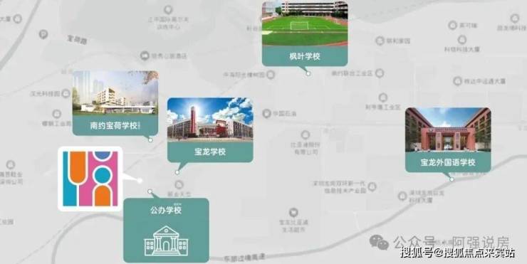 项目自带1所12班制幼儿园,家门口规划有1所九年一贯制公办学校(已经在动工),小学、初中学区,都是划分为宝龙学校(300米)、宝荷学校(500米)、宝龙外国语学校。