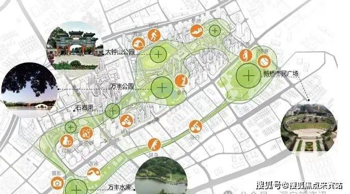以新桥市民广场、大钟山,石岩渠、万丰水库。立新水库等绿色生态资源为基础搭建”生态绿环+城市绿芯”生态色框架,打造“线性公园”+“节点公园”公共开放空间体系,形成10公里生态绿环创造了片区居民多样化的居住休憩生活方式。