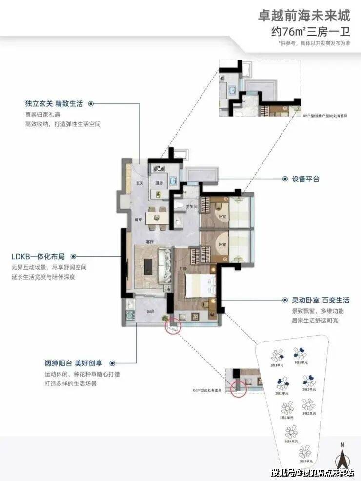 76㎡的3房2厅1卫,折后总价264-278万/套,折后单价3.47-3.63万/㎡。