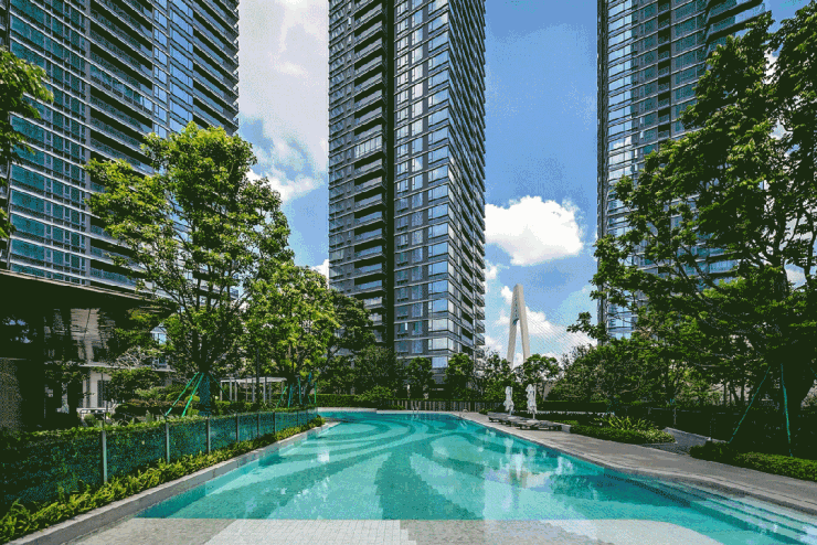 泳池整合超50米L型泳道、舒缓身心的水疗按摩池、专属儿童泳池及周边泛泳池会所空间,形成完整的水上生活体系。