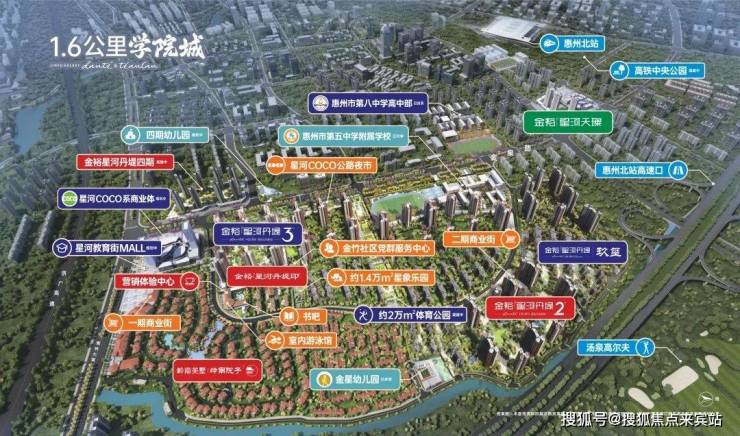 金裕星河丹堤位于惠州CBD北站新城片区核心位置,距高铁站约1.5公里,是目前北站新城规模最大的社区,社区自带COCO系商业、3-15岁一站式教育配套,金星幼儿园/五中附校/八中高中部军已开学!