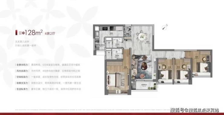 建面128平四房两卫,五开间朝南,客厅直出阳台,四个卧室非阳台报建,收楼后不用自己改造,总价510万左右。
