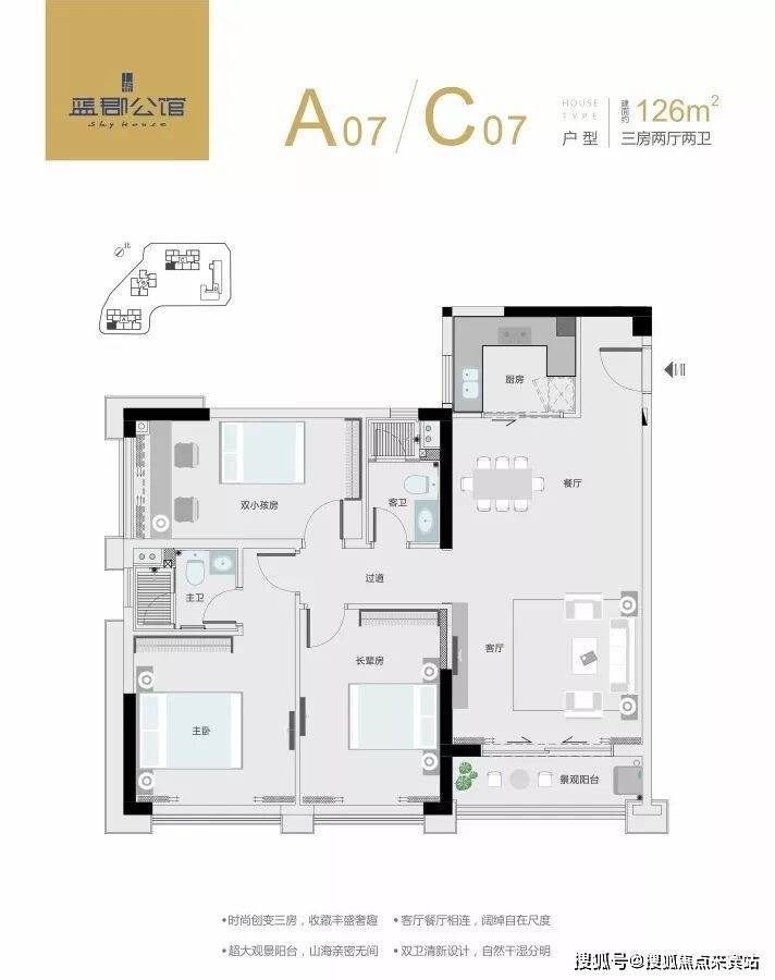 项目可通燃气,景观阳台,主宾分区,动静分离,户型方正实用。