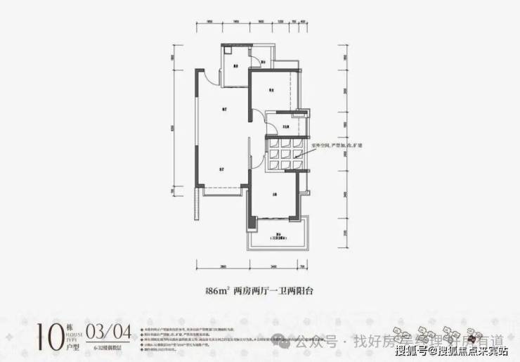 86平2房2卫(客厅开间3.8米)