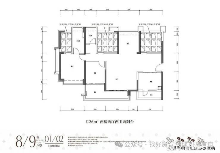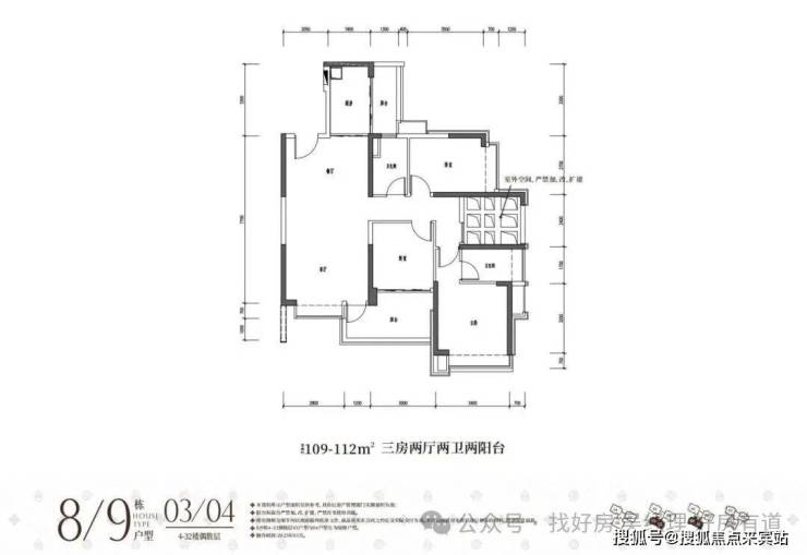 113平3房2卫(客厅开间4米)