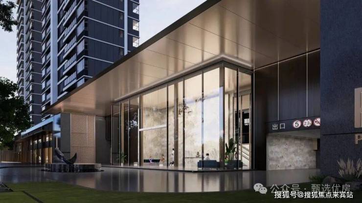 大良东区首个酒店式归家大堂设计,近50米宽8米高的高奢社区大门,酒店式环岛落客区,大堂外挑5米,出行不受风雨影响,人车动线分离。