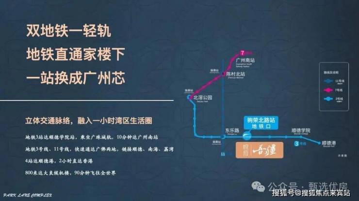 🚇下楼即达3号线,一站换乘广州芯已经开通的佛山地铁3号线,驹荣北路地铁站口即小区门口,3号线是佛山最长的地铁线,37个站,直达北滘,禅桂中心,被称为佛山南北大动脉。佛山地铁11号线规划中的东乐路站换乘直达广州老城芯荔湾区。