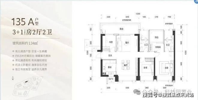 135㎡:横厅格局,南北双阳台设计,9.8㎡南向主阳台,三个房间面积分别达到9/11/15㎡,主卧带衣帽间和卫生间,舒适度非常好。