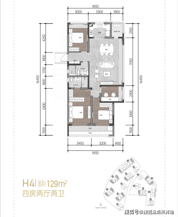 128㎡:四房两厅两卫