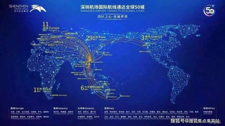 作为大空港的核心驱动力-深圳机场,目前国际客运航线已通达全球50城,年吞吐量高达约4900万人次。与宝安区海、陆、空、地、快立体复合型交通形成航空、物流型产业集群,全面拉动区域经济发展,缔造价值制高点。