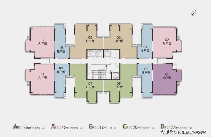 竖厅格局,卧室3.3米开间,阳台1.6米宽度,一字型厨房,还带1个小生活阳台,得房率:78.87%(不含赠送),有西北或东南朝向。