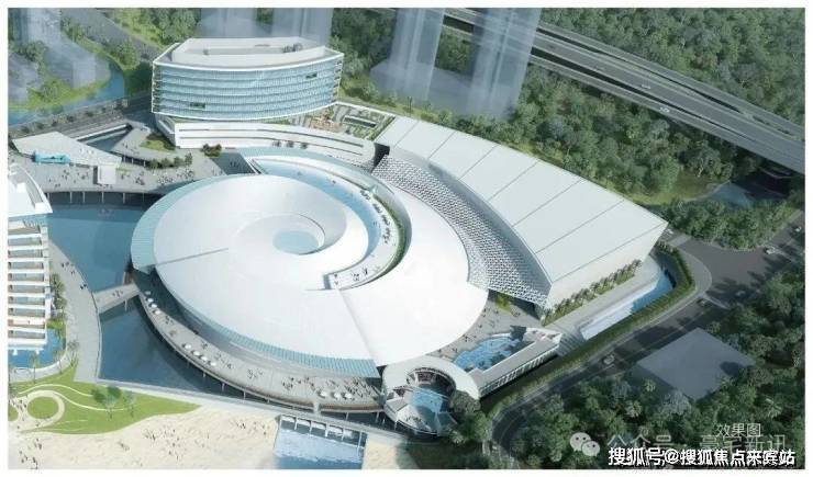 外观为“鹦鹉螺”,由日本佐藤综合计画设计,以海洋动物展示、科技演艺、多媒体互动科普为主体,近享国际一流海洋主题公园,动物约200多种,融合全球最大青蓝洞景观。
