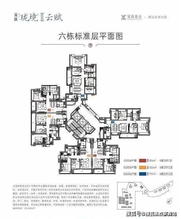 ▫️ 超高层+高公摊: 二期为49-55层超高层,3梯6户,得房率约75%。对比周边新盘(如中洲、中建)略显保守,85㎡仅1卫,102㎡3房2卫相比一些新规楼盘,户型使用率并不占优。