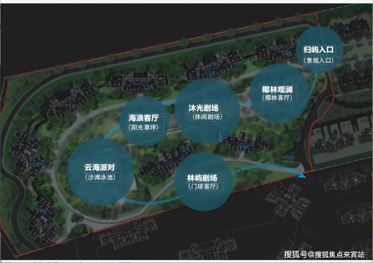 以“林屿” 为主线贯穿园林始终,结合度假生活的需求和海岛的居住文化、自然资源景观等,园林八大主题空间串联,包括椰林嘉观澜,沐光剧场、海浪客厅等场景交织,兼顾功能性和美观性,为湾区园林生活树立一个新标准。