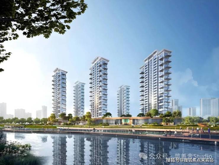 项目园林规划建设约300㎡水院、约600㎡镜面水景、约2000㎡水岸会客厅等景观及休闲空间,融入了镬耳屋、满洲窗棂等岭南元素。