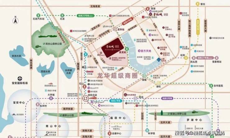 项目占位龙华超级商圈几何正芯,龙华商业中心城市更新北片区,傲踞天赋C位地块。