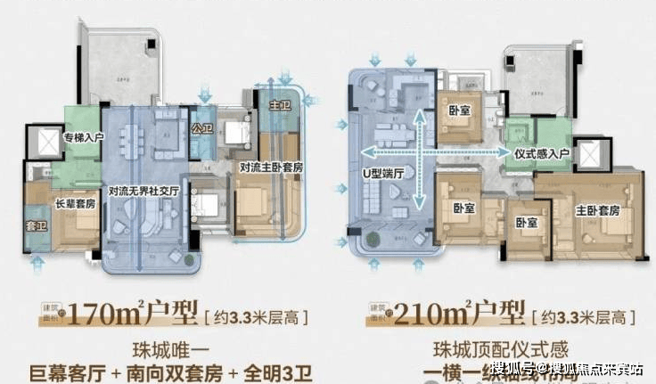 170-220㎡四房空间开阔,部分户型能俯瞰珠江,两梯两户带来私密体验,还配备中央空调整温、全热交换新风系统,双层中空LOW-E玻璃能有效隔绝噪音,居住体验更佳。