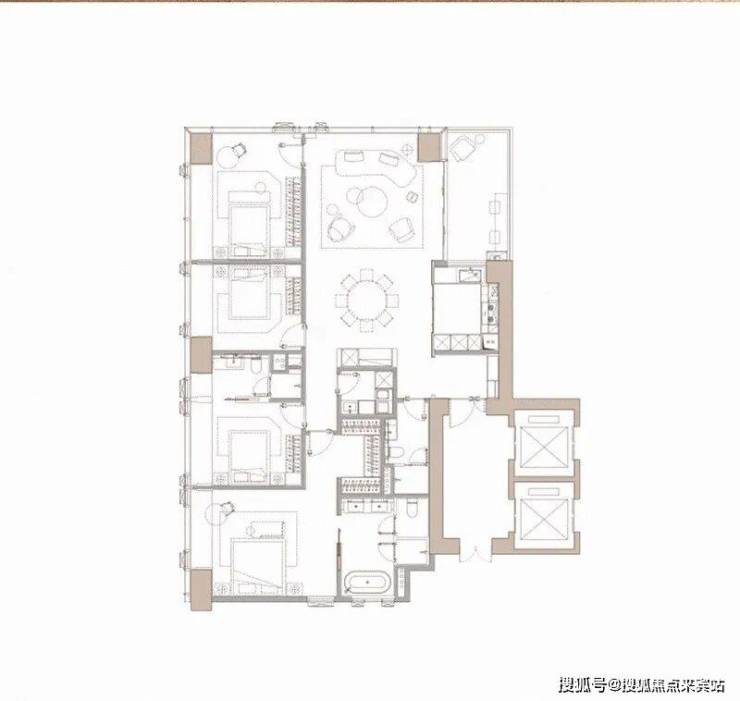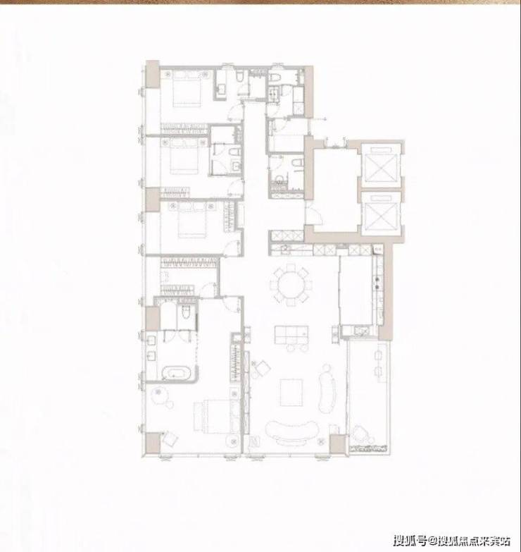 主服双动线设计,在享受高效生活的同时,又确保了业主的私密感。还有3个套间,不管是三代同堂、或是客人来访,都能保有各自的隐私。