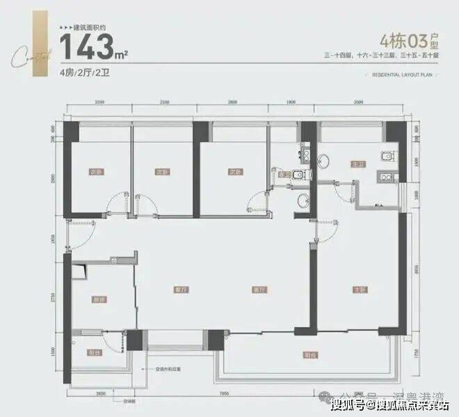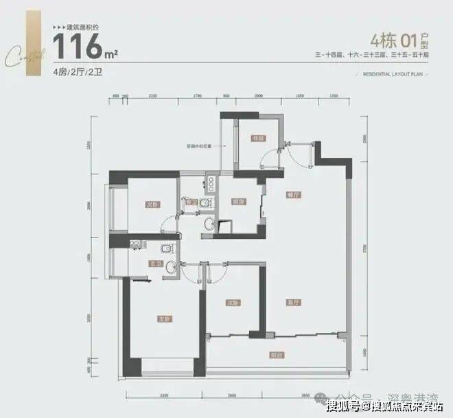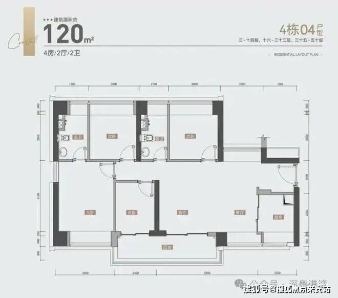 4栋、5栋:4梯5户,层高3.1米,01-02户型116平3房2卫,03、05户型142平4房2卫,04户型120平3房2卫;