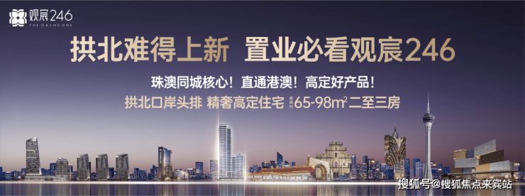 “观宸246”位居拱北口岸头排,珠澳同城核心板块,城市中心+口岸物业双极加持,近10年来距离拱北口岸、港珠澳大桥口岸最近的纯住新盘,左手澳门世界级休闲娱乐配套,右手拱北城市烟火生活,坐享醇熟配套,畅享港珠澳三城无界生活。