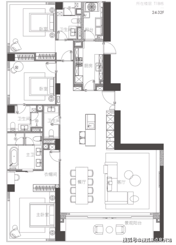 04户型 东端户 约350㎡ 四房两厅四卫(01、04镜像对称)