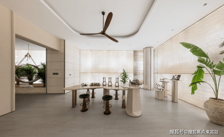 大门甄选珍稀石材莱姆石,入口处的中心环岛水景则以绿金奢石铺陈,恍惚闯进迪拜王室迎宾盛典。