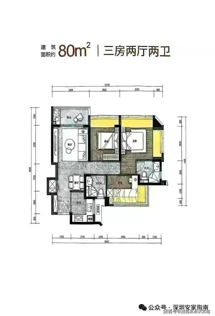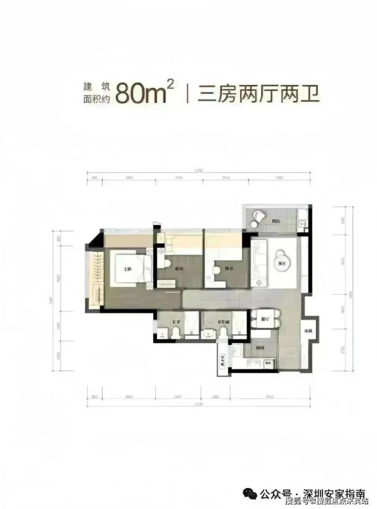 80m²的3房2厅2卫,折后总价298-322万/套,单价3.72-3.98万/m²。