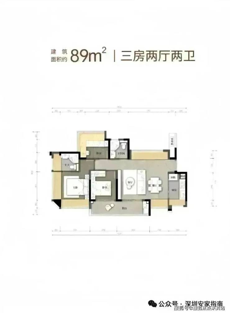 89m²的3房2厅2卫,折后总价335-375万/套,单价3.8-4.28万/m²。
