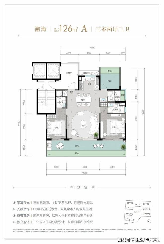 规划建筑面积约126-213㎡观海奢装大平层,约3.1米阔绰层高,部分户型创新设计270°全景飘窗主卧套、四开间朝南等,全成品高标奢装,营造全新舒居体验。