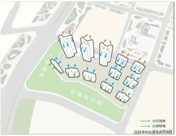 基于此,项目放弃利益最大化的围合布局,首期利用中轴对称排布约12栋住宅;