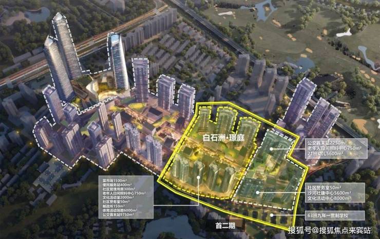 核心配套——29号线地铁上盖,自带约10万㎡商业,1所幼儿园、1所南外九年一贯制学校,约7万㎡社区公配将与一期同期交付