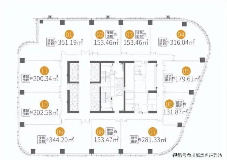 标准层面积:约2500㎡(152.22-276.5-389.78-2437㎡)