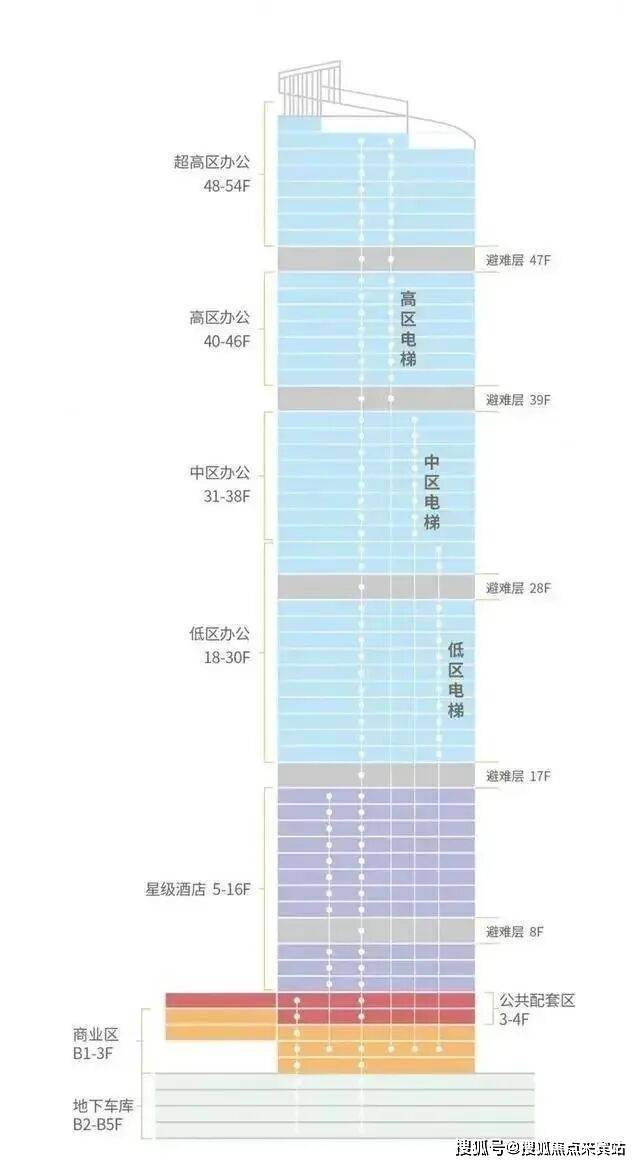 写字楼层高:标准层高4.2米,超高区(48F以上)4.5米