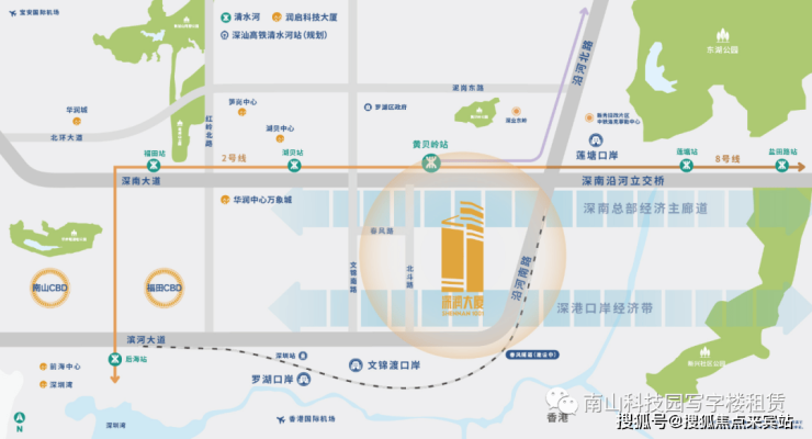 罗湖口岸、莲塘口岸、文锦渡口岸,3公里三大口岸簇拥,链接深港
