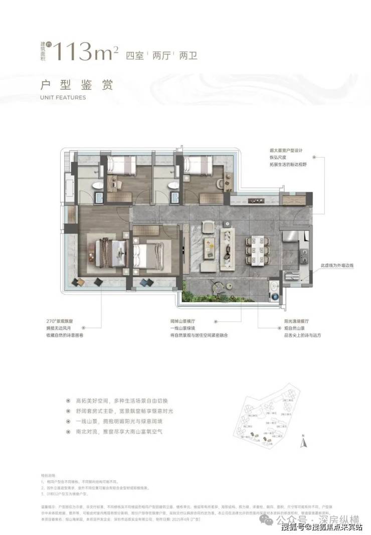 观山海家园,尊享山居四房,前海稀缺之选,建面约113-138㎡四房。