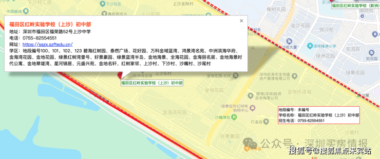 目前学区划分,小学是福田区绿洲小学,初中是红岭实验学校(上沙)初中部