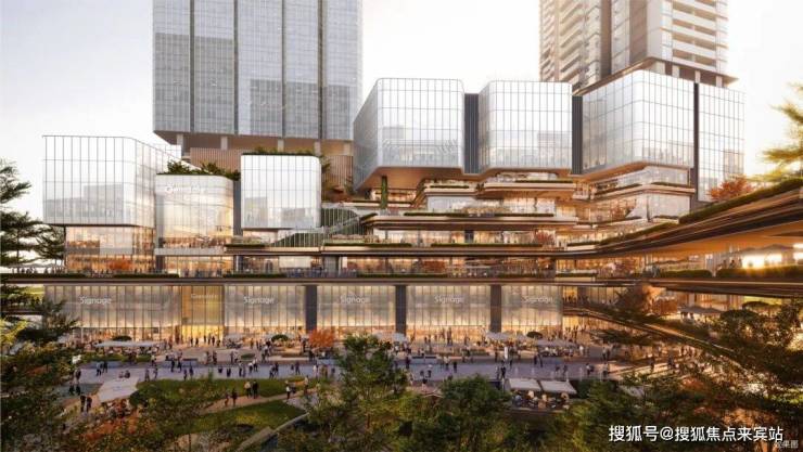 项目聚合办公、公寓、住宅、酒店、文娱、商业、绿地公园、九年制公办学校、幼儿园等业态于一体。配置奢华酒店式地库大堂、约150米高空泛会所、奢配空中海景连廊等。