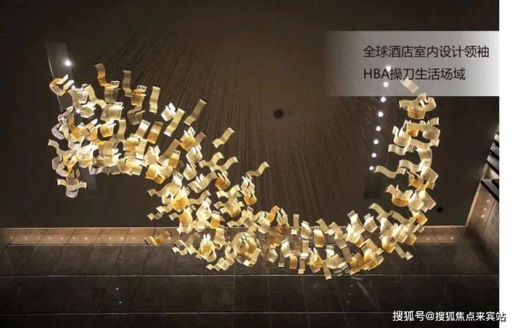 约10米挑高首层大堂。设计采用流水为元素,迈入大堂犹如置身于水波粼粼之中。门头的水波纹玻璃有着黄河之水天上来的恢弘之势。天花顶棚巧妙糅合镜面元素与自然的叶脉灯饰设计,体验从“水光之晶” 过渡到“自然森林”,自然而然。