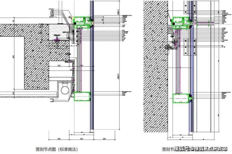 ▲ 酒店裙楼折线玻璃幕墙系统节点图