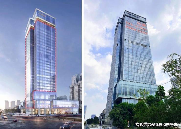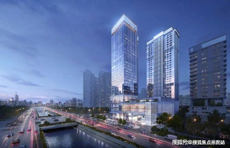 项目整体呈现双塔形象,包含酒店塔楼,公寓塔楼,商业裙楼,总建筑高度138.05米,汇集豪华酒店、高端公寓、商业和公共设施等多样业态。