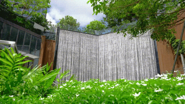 归家动线上,叠水瀑布相伴,步步皆有自然韵律