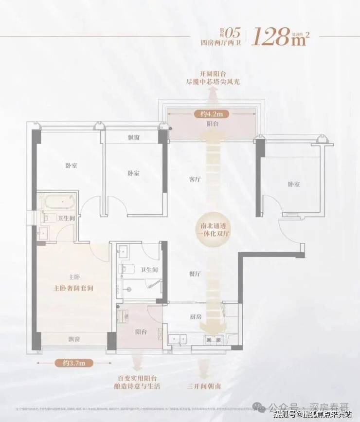 建面约128㎡的4房2厅2卫