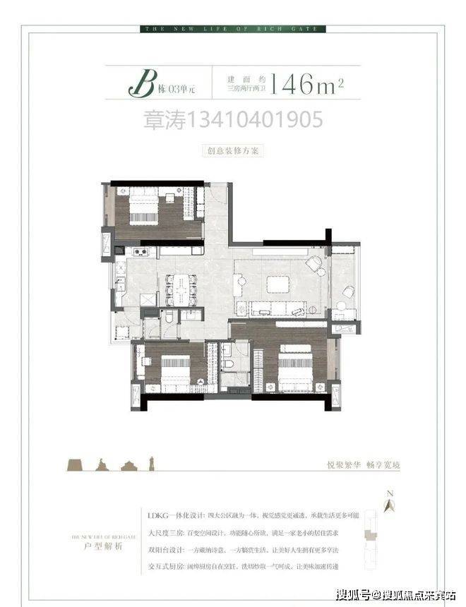 B栋03单元东西对流146㎡大厅大房三房户型:
