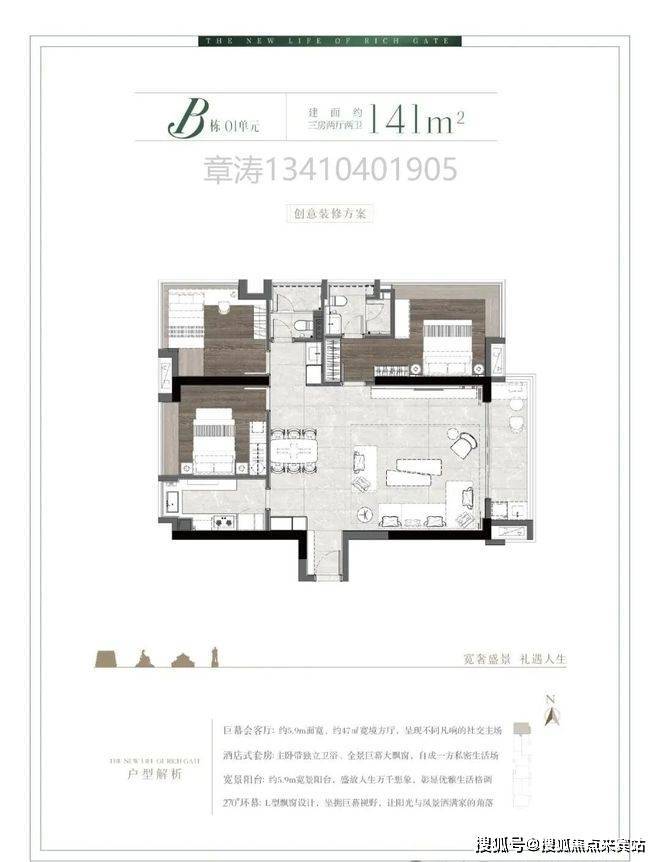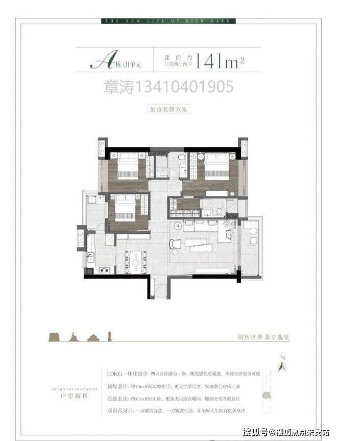 A栋01单元东西对流141㎡大厅大房三房户型:🌈广州君熙府❄️售楼处热线:400-856-3771【售楼处电话已认证】✨☃☃☃