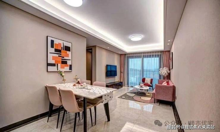 坪山难得的在售臻装现房项目,生活美好醇熟呈现,轩敞餐客厅与南向阳台相连;