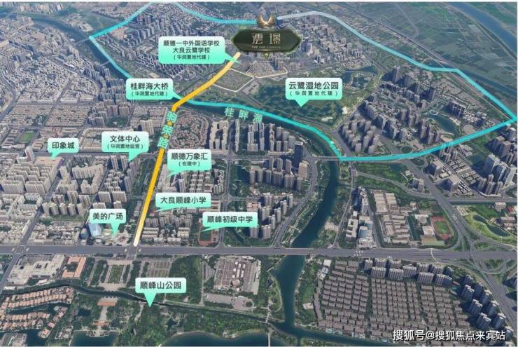 华润置地·顺德澐璟,坐落于佛山市顺德区大良街道的云鹭片区,这一区域不仅是顺德城央的璀璨明珠,更是大良东区超级中轴上的天赋宝地。项目紧邻桂畔河,与顺德绿地中心隔水相望,自然景观与城市繁华交相辉映,形成了“出则繁华,入则宁静”的独特居住体验。