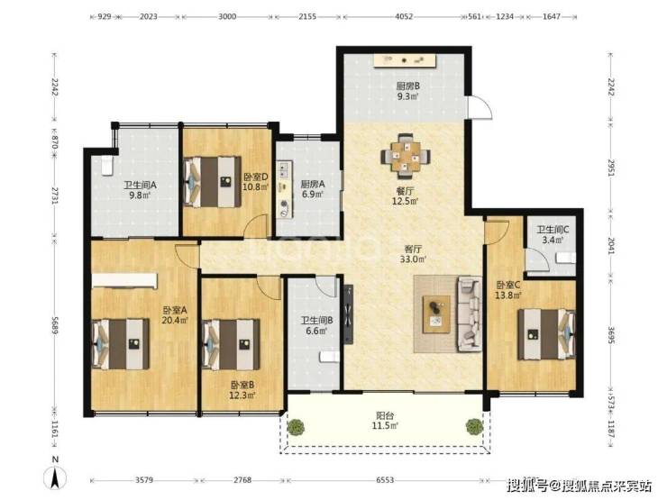 ⭐117㎡两卫(3+1房)⭐赠送30㎡