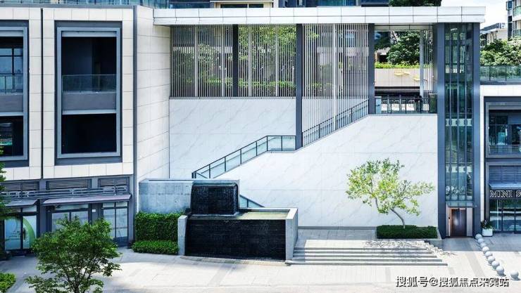 ◎ 三重松水对景,单元入户处以围合式绿植设计,打造私家入户花园院落布景,三座涌泉石墩于此潺潺吟唱,搭配名贵罗汉松、夜里雪花岗岩铺地砖,苍松迎客,水韵悠悠,以礼序之美开启归家首章。