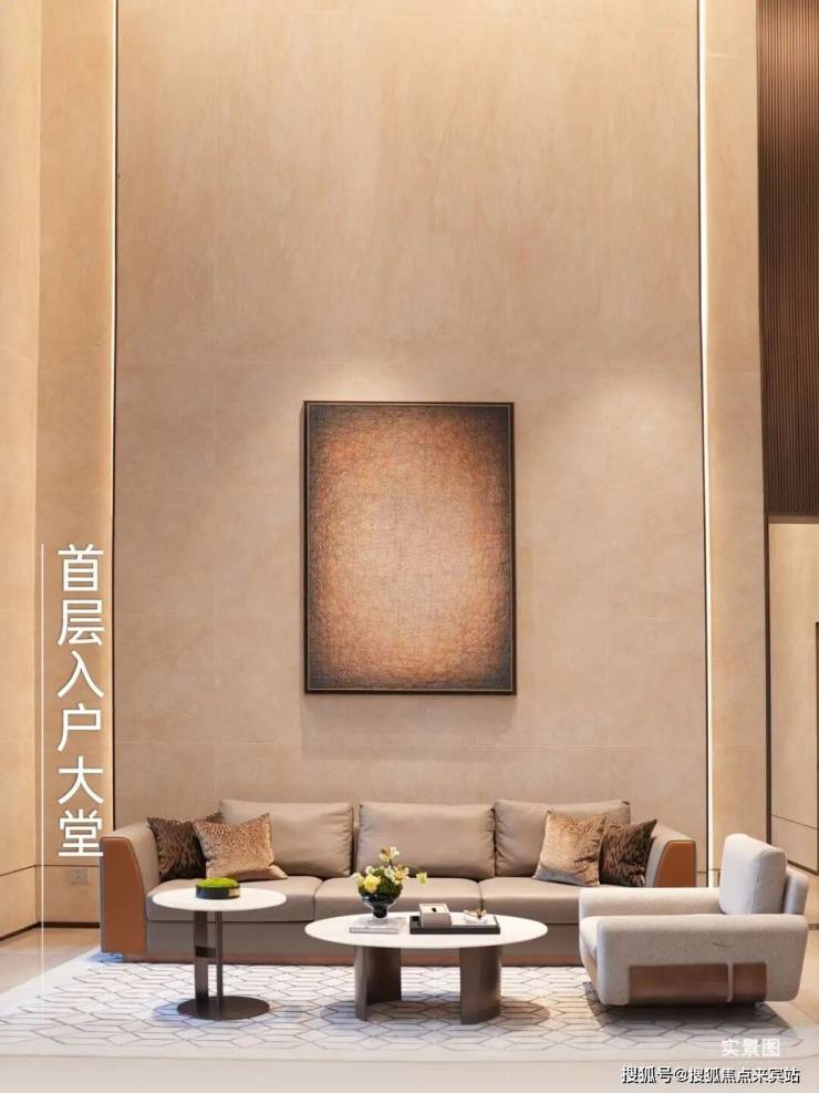 首层入户大堂挑高设计,以东西方现代手法演绎岭南风格元素,搭配高定新奢软装,烘托臻雅气质;五星级酒店同款的贝宁白石材景墙,色泽温润,纹理细腻,让高门阔府的即视感扑面而来。